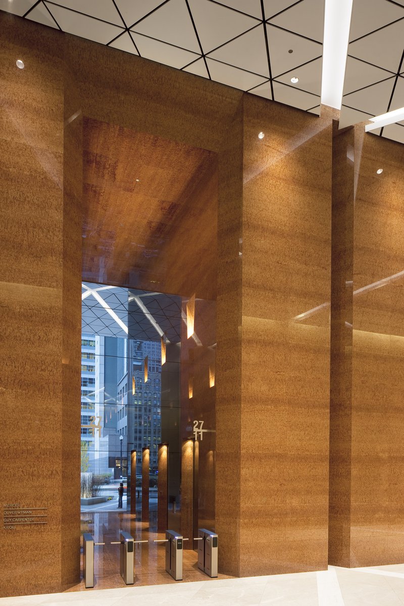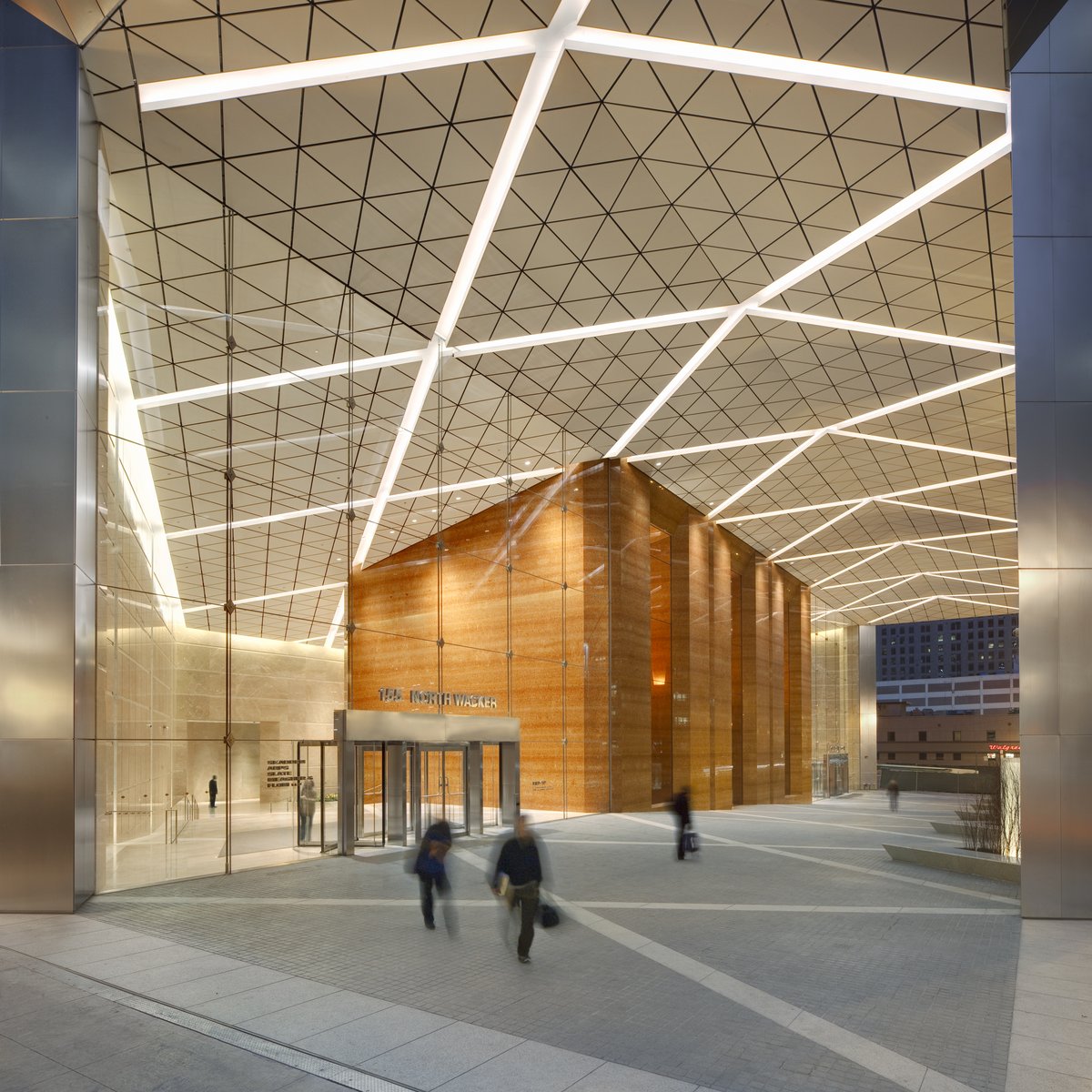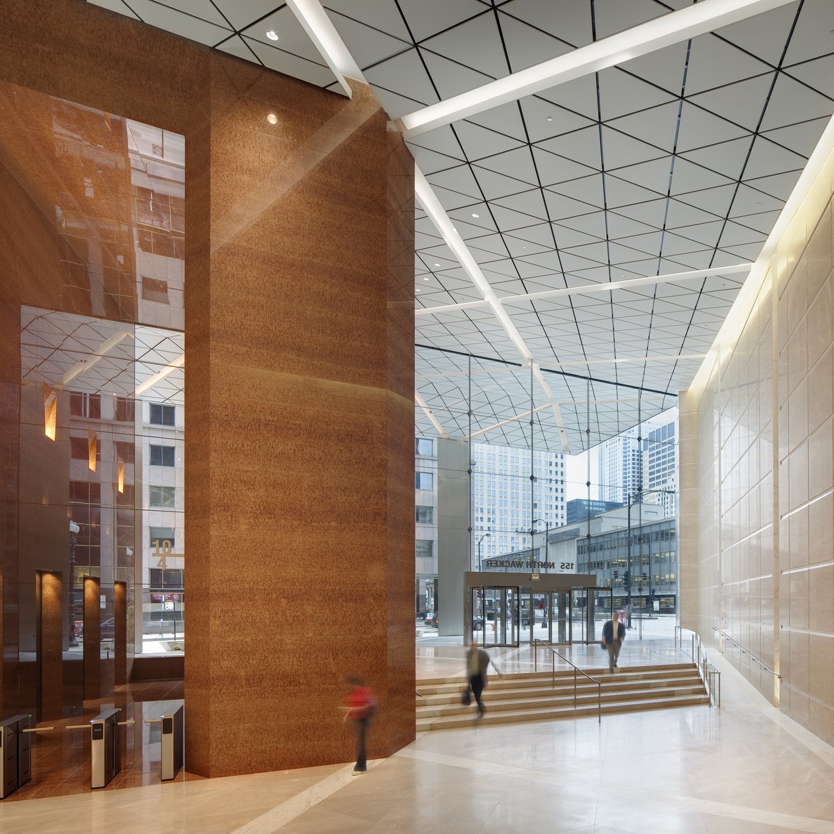 155 North Wacker is a Class A office tower located in downtown Chicago. While the tower’s structurally rational aesthetic reinforces the fabric of Chicago’s skyline, the building’s distinctive open base activates the public realm through its street presence.