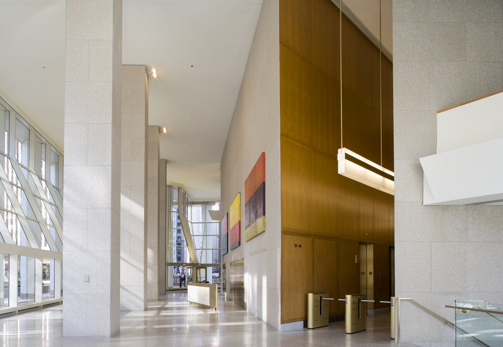 The 200 South Wacker building was originally designed by Harry Weese & Associates and completed in 1981. As the building changed owners several times in the mid- to late 2000s, Goettsch Partners worked with a series of different clients to help reposition the 756,600-square-foot property. Work included the removal of a previous unsympathetic remodeling, restoration of lighting and finish concepts, the addition of a new parking garage, security enhancements, and tenant amenities including a health club and restaurant.