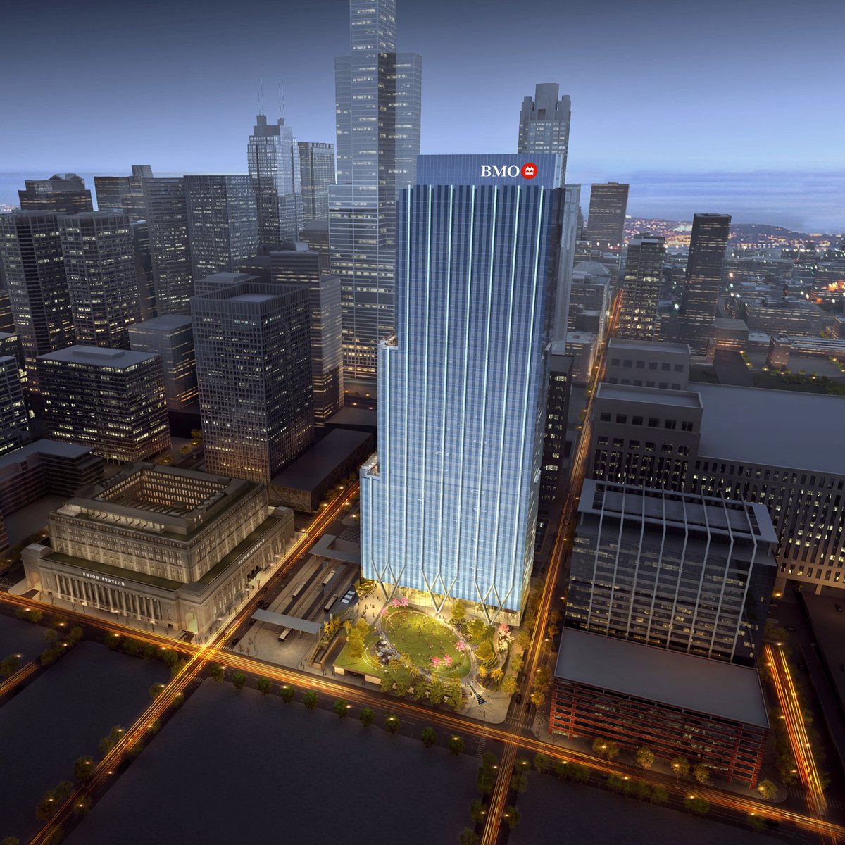 As part of the larger redevelopment of Chicago Union Station and additional adjacent real estate owned by Amtrak, this project adds a new landmark office tower and major public space to the city. Located directly south of the 1925 Union Station headhouse building, the 2.2-acre full-block site is positioned in a rapidly changing area of the West Loop, with close connections to transit and the major expressways. The program consists of 1.5 million square feet of Class A office space and associated amenities, including two levels of underground parking. The majority of the site—approximately 1.5 acres—is set aside as a public park.