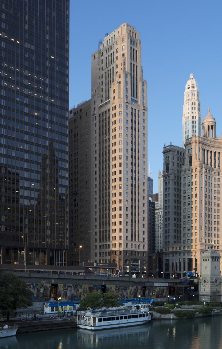 New infrastructure in the form of new and renovated mechanical rooms and distribution, as well as a new electrical bus duct, brought the building up to modern standards. New corridors and standards for tenant entries were implemented. Bathrooms are being renovated on a floor-by-floor basis as they become available and as tenants are replaced. The floors that housed the former Tavern Club are being transformed into “special” office space, with taller ceilings, renovated outdoor terraces, a new exterior enclosure, and sweeping views up and down Michigan Avenue.