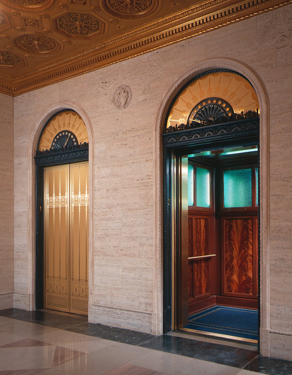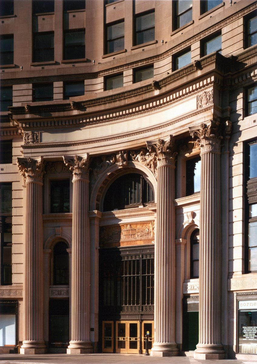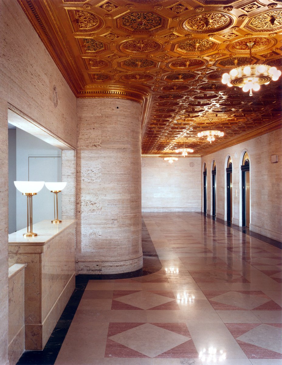 The building’s marble floors and walls were cleaned and refinished. A selection of the original cast elements was used to recreate the ornamental decoration of the original lobby and entrance. The elevator operating system was completely upgraded, and cabs were replaced on all cars in a phased program. Typical floor elevator lobbies, corridors and toilet rooms were replaced or renovated and a base building package of entry doors, ceilings, partitions and finishes was developed and implemented. In addition to these elements, a tenant master plan and marketing plans were developed. Now faithfully restored, the building is once more attracting tenants and the magnificent picture window once again graces one of Chicago’s most important intersections.