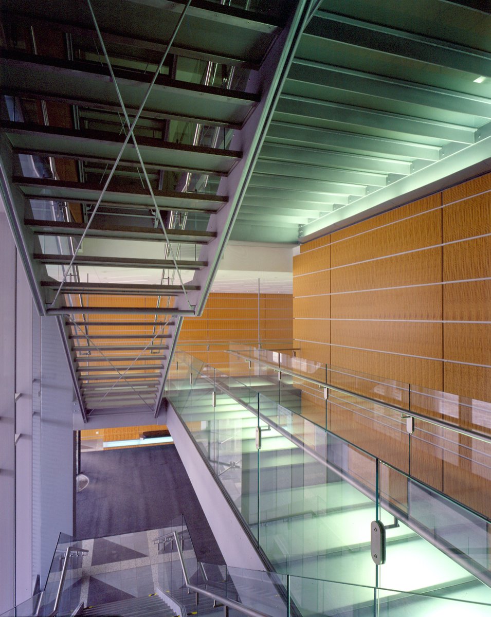 The first two floors are occupied by retail tenants that benefit from a skylit atrium and foot traffic from the metro station below. The atrium is reminiscent of the traditional Prague courtyard building, as the hard-edged street wall gives way to an interior moment of light and air. The typical office floor plates provide planning efficiencies and state-of-the-art building systems that are rare within the historic city core.
