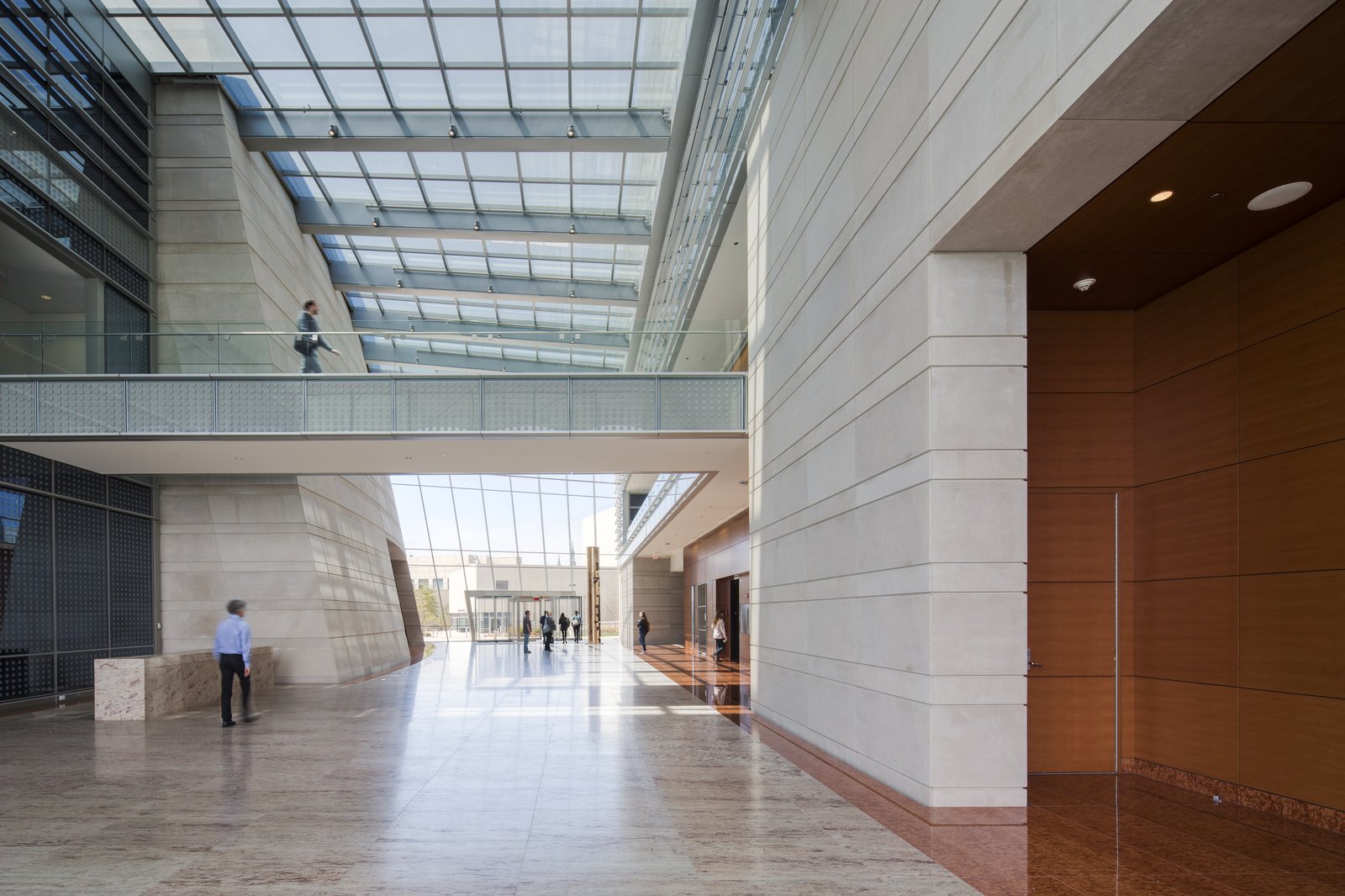 Guided by the university’s master plan, the building forms a new quadrangle with other performing and fine arts facilities, fostering a more collaborative arts community. The dynamic, Z-shaped plan of the building mass defines the eastern edge of a new arts green then jogs to the western edge of the lake. A large atrium divides this form, providing the main entry and gathering space and offering striking views of the lake. Building materials relate to other campus facilities, with the three main performance venues—recital hall, opera/black box, and choral—all defined by limestone, and the classrooms, offices and practice rooms (with views) enclosed in glass. Certified LEED-NC Gold, the building offers a variety of innovative sustainable features, including a double-skin facade and grey-water system. All spaces respond to significant acoustical separation and performance requirements.