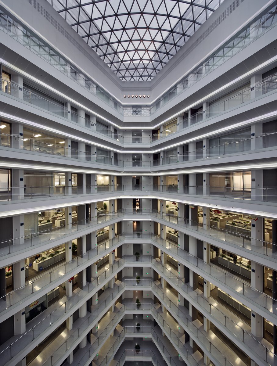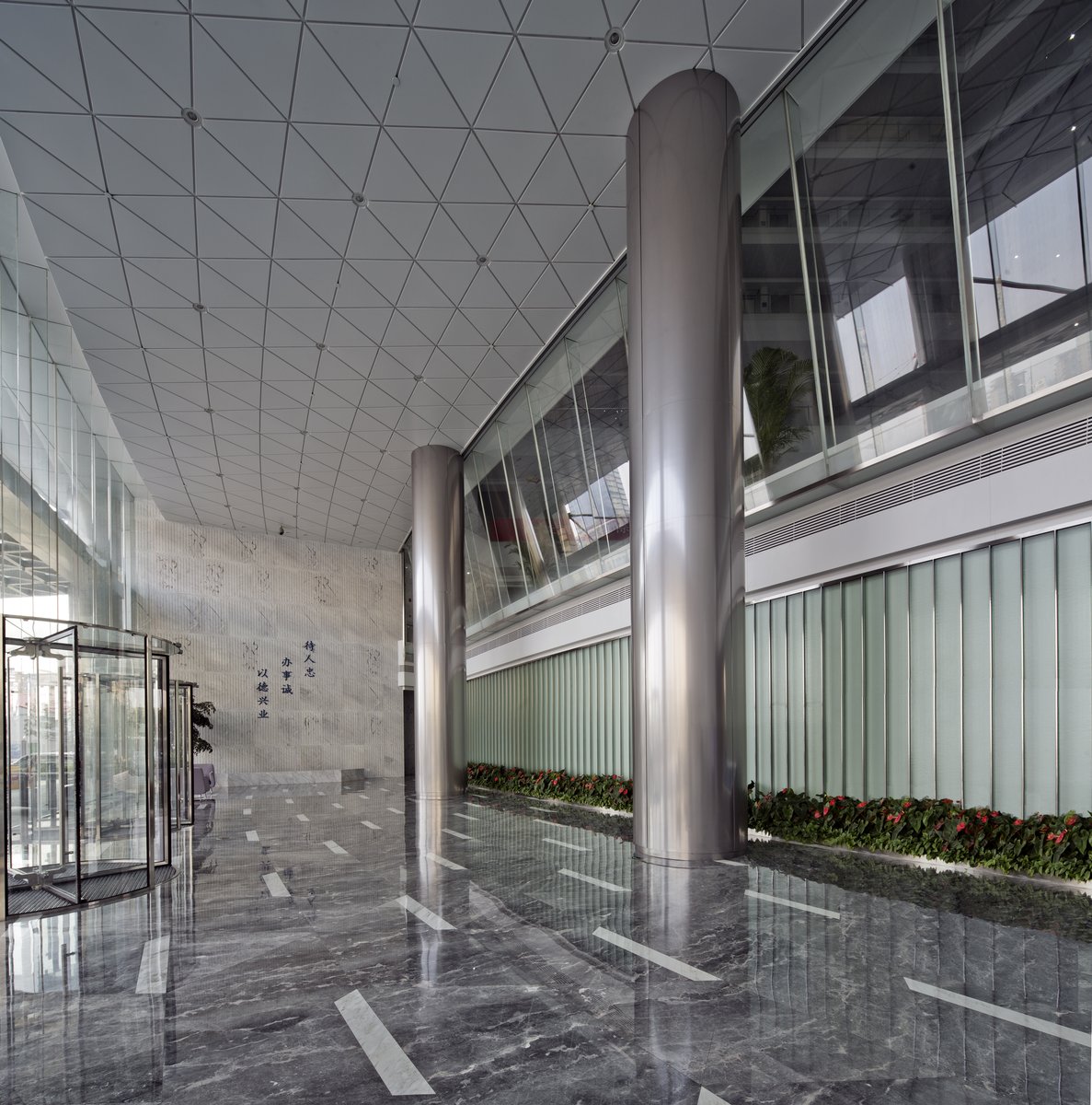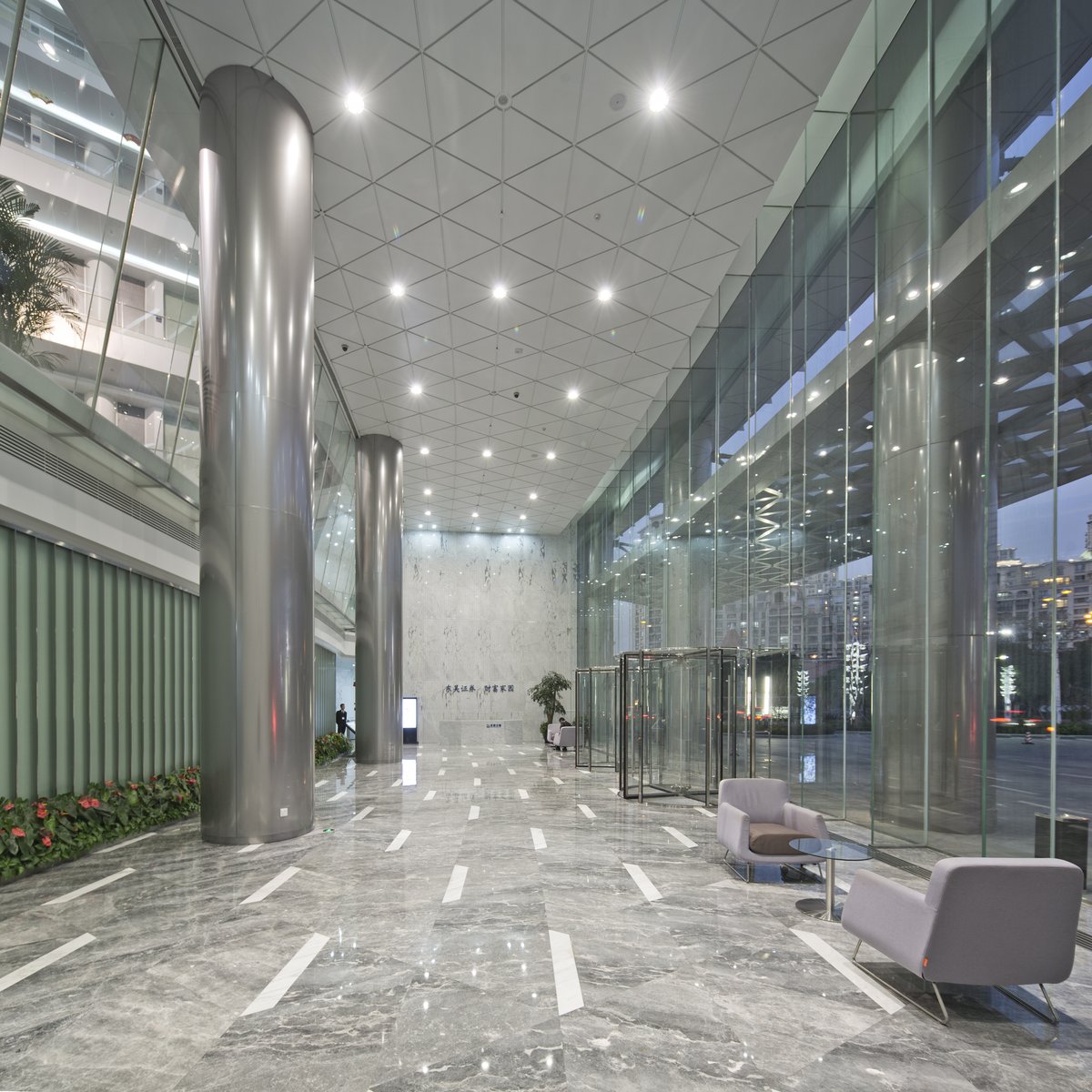 Within Suzhou, China, the office and stock exchange building is sited along the western edge of Jinji Lake in Suzhou Industrial Park, a major commercial and mixed-use district outside the city center. Prominently anchoring a major boulevard that leads to central Suzhou, the building is conceived as a modern gateway to the historic city center. The triangular massing design responds contextually to the view corridors of the city and lake, the solar orientation of the site, and the major diagonal vehicular artery. The triangular form is also seen symbolically in China as a balanced and stable form, an image well suited to a stock exchange headquarters.