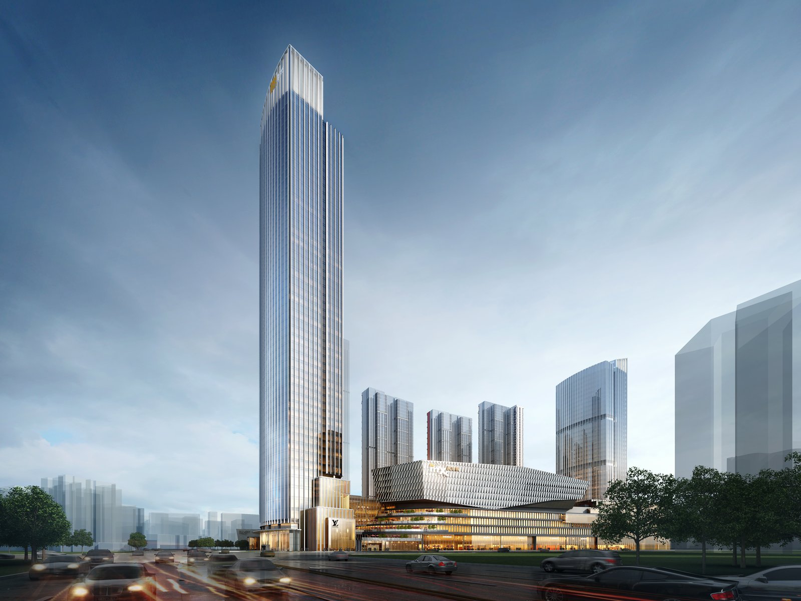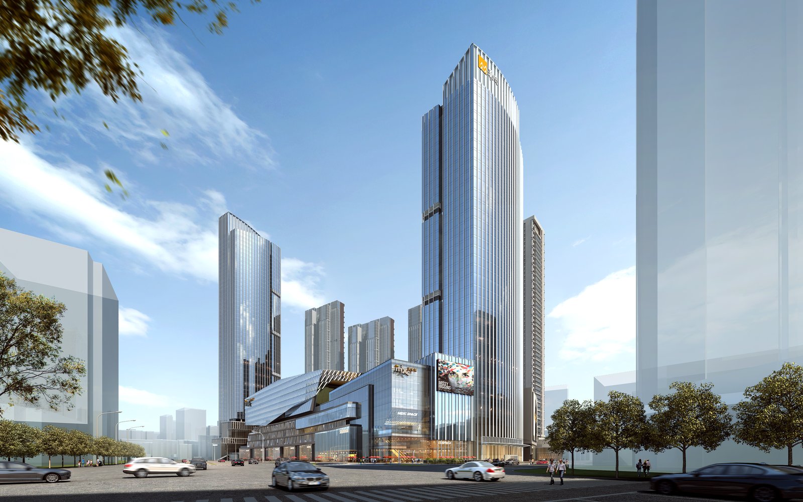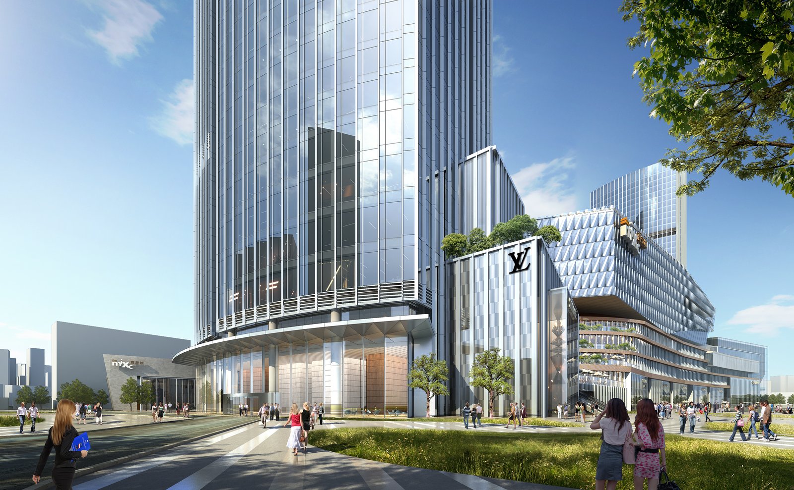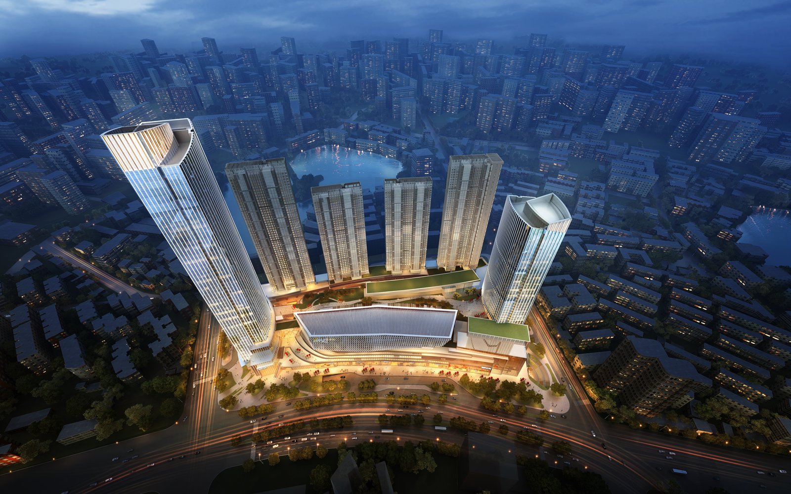 This ambitious new development is located centrally in the Jianghan district of Wuhan, China. Prominently sited along Jianshe Avenue with direct access to a new metro line, the complex is composed of a mixture of commercial and residential functions that will extend and enhance the vitality of this bustling area.