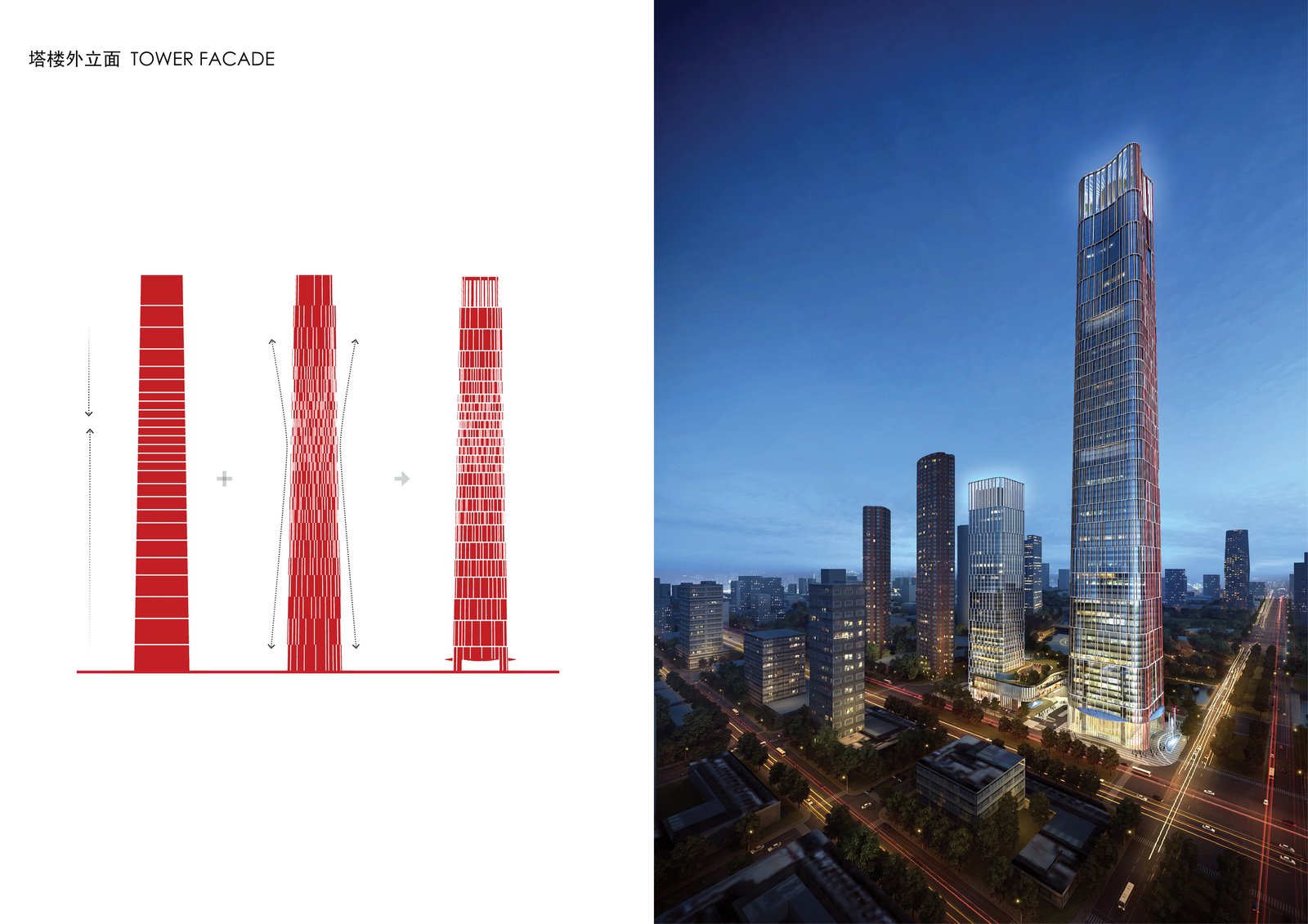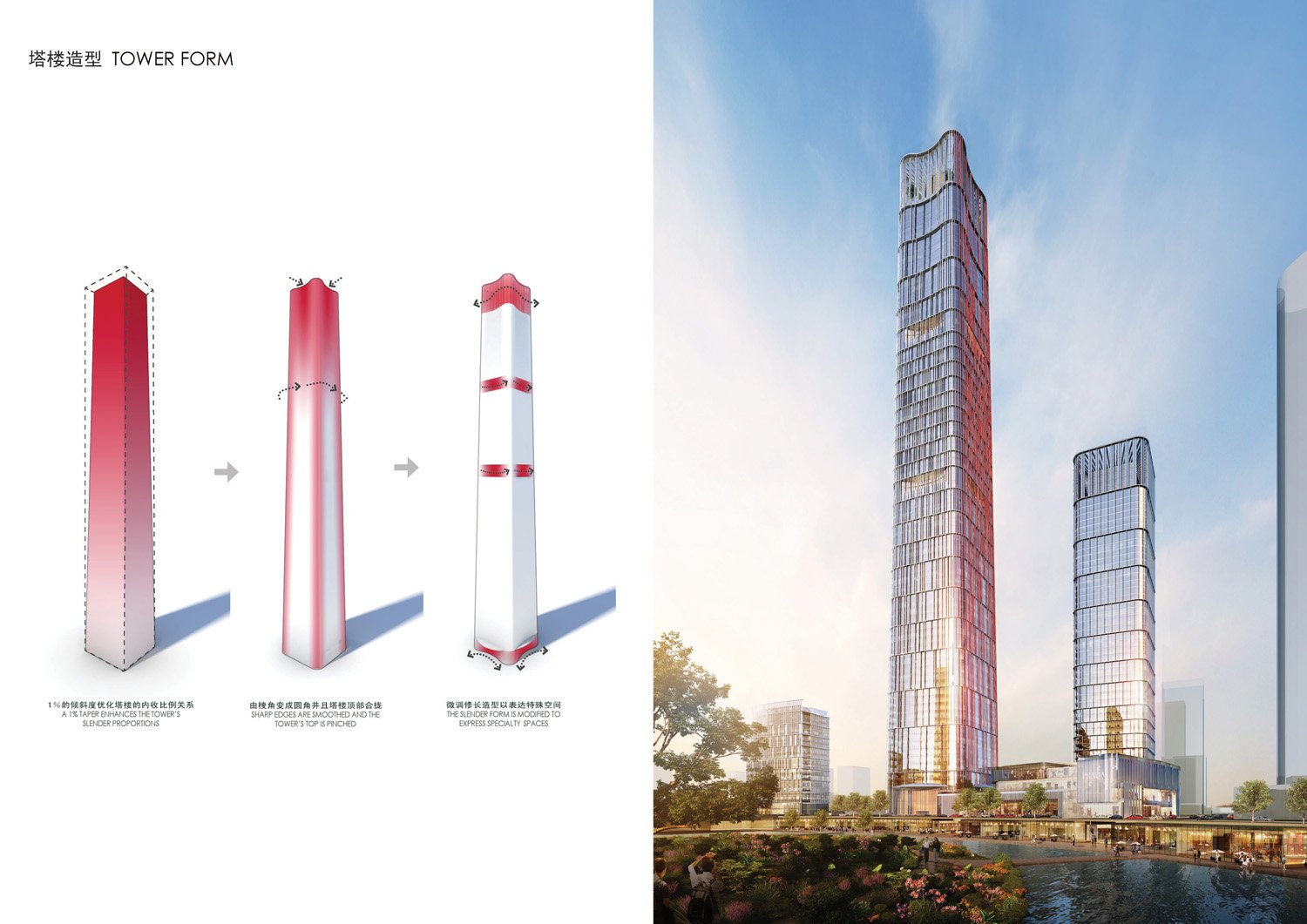 The master plan for the new Optics Valley is ambitious in both scale and vision, establishing a new world-class downtown to the southeast of Wuhan. At the center of the new district are two main parcels, which are intentionally allocated to host a mix of commercial functions. More importantly, these parcels will house the signature 400-meter landmark tower. At this height, unobstructed views will be unparalleled to the neighboring mountain ranges, historic city center and vast network of lakes and rivers that make Wuhan a prominent destination.