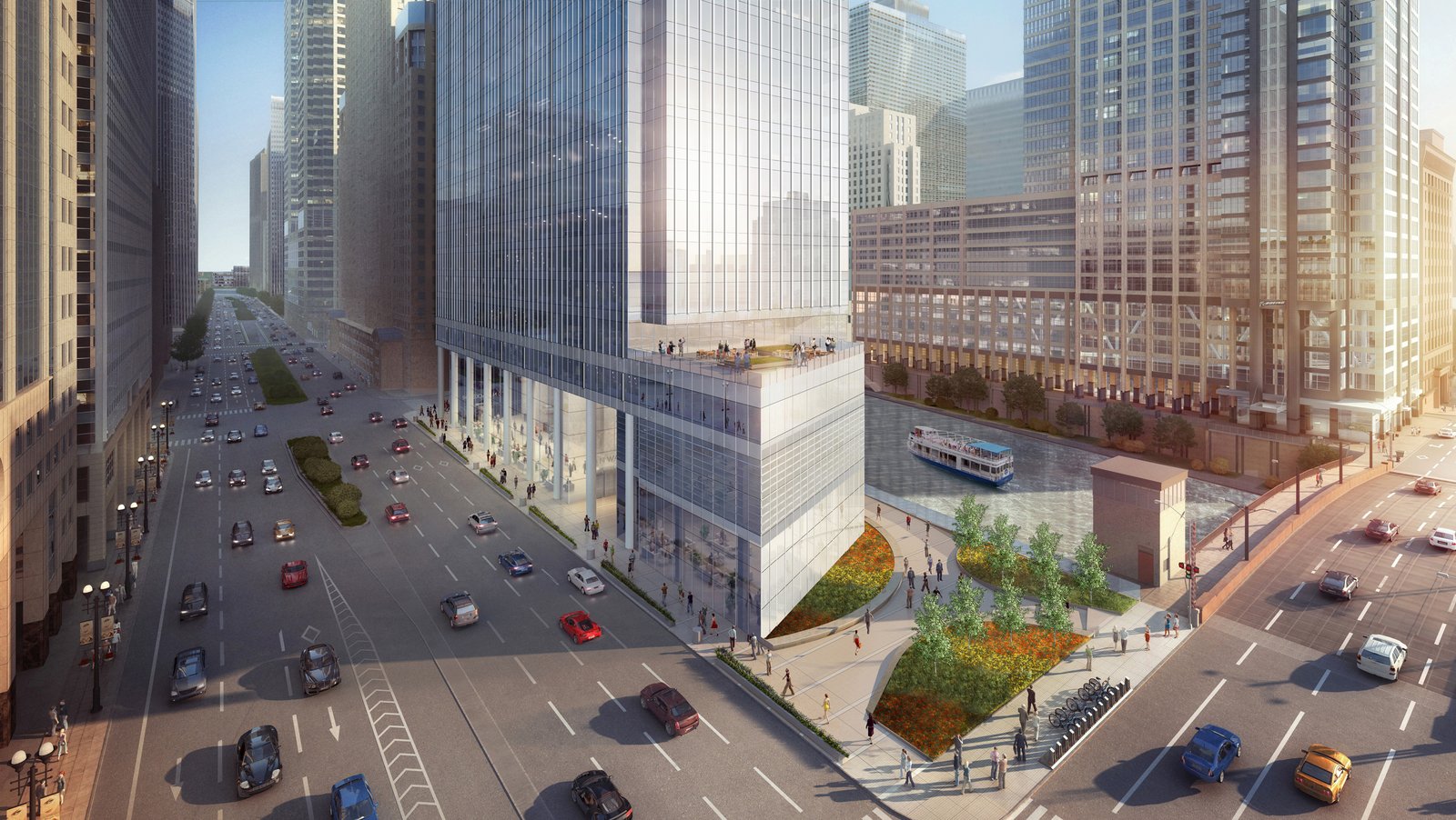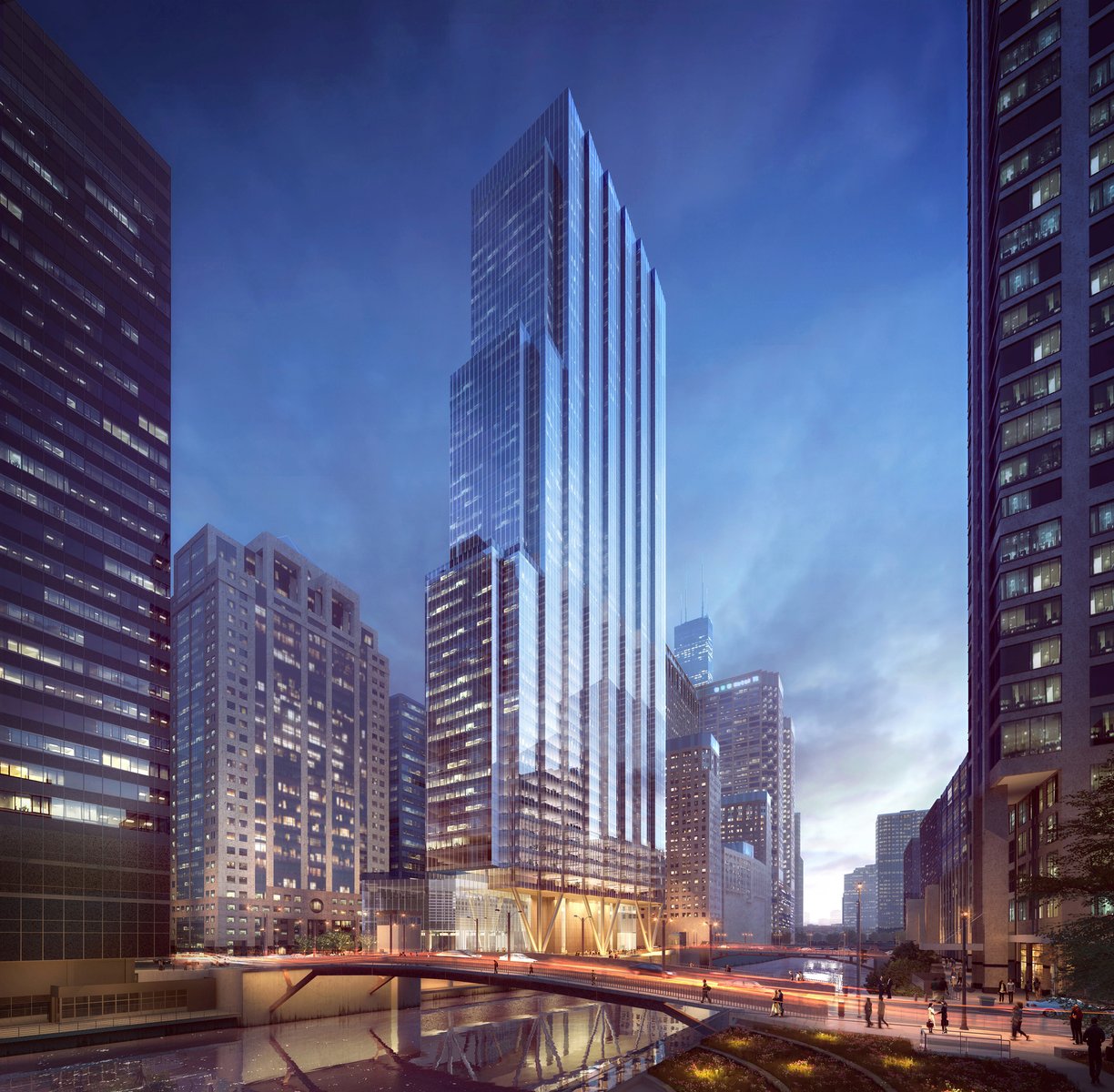 Set between prestigious Wacker Drive and the Chicago River, the 51-story Class-A building is being designed by Chicago-based Goettsch Partners, internationally renowned for their exceptional high-rise design and technical expertise. The 1.35 million-square-foot tower is wrapped in a high-performance, aluminum-and-glass curtain wall and will feature sweeping views up and down the river, as well as of the Chicago skyline and Lake Michigan. The tower will also feature an abundance of first-class modern amenities, including retail and dining options, a conference center, a fitness facility and state-of-the-art building systems.